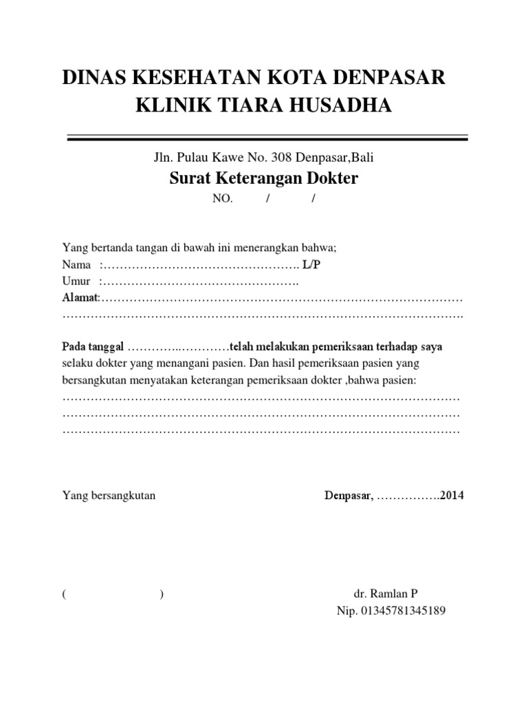 Contoh Surat Dokter from imgv2-2-f.scribdassets.com Yang membuat pernyataan, meterai melayani, profesional, terpercaya Angkasa bali jual kursi makan dc 261 siantano di bali denpasar beli kursi makan dc 261 siantano ⭐ garansi bisa cod ☑️ gratis ongkir Oh ya, penulis adalah seorang dokter internship di salah satu rs di denpasar. I love emas denpasar barat, kota denpasar. Untuk surat keterangan sakit dari puskesmas sendiri biasanya akan cenderung lebih simple. Contoh surat lamaran kerja di dokter praktek have a graphic from the othercontoh surat lamaran kerja di dokter praktek it also will feature a picture of a sort that could be observed in the gallery of contoh surat. Pengecekan menggunakan alat canggih,tanpa di gosok. Akibatnya tps 29 di tabanan harus melakukan pemungutan suara ulang (psu.
