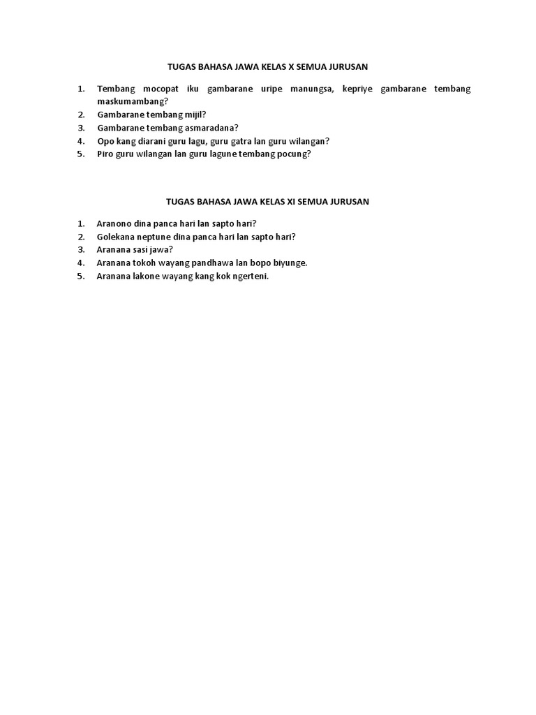 Tugas Bahasa Jawa Kelas 2 / Tugas Remidial Bahasa Jawa Untuk Kelas Xi Ipa Dan Xi Ips Www Harrywidhiarto Com Remidial Kelas Xi - I.ukara yen kaperamg manut wasesane, kaperang dadi 3,yakuwe;